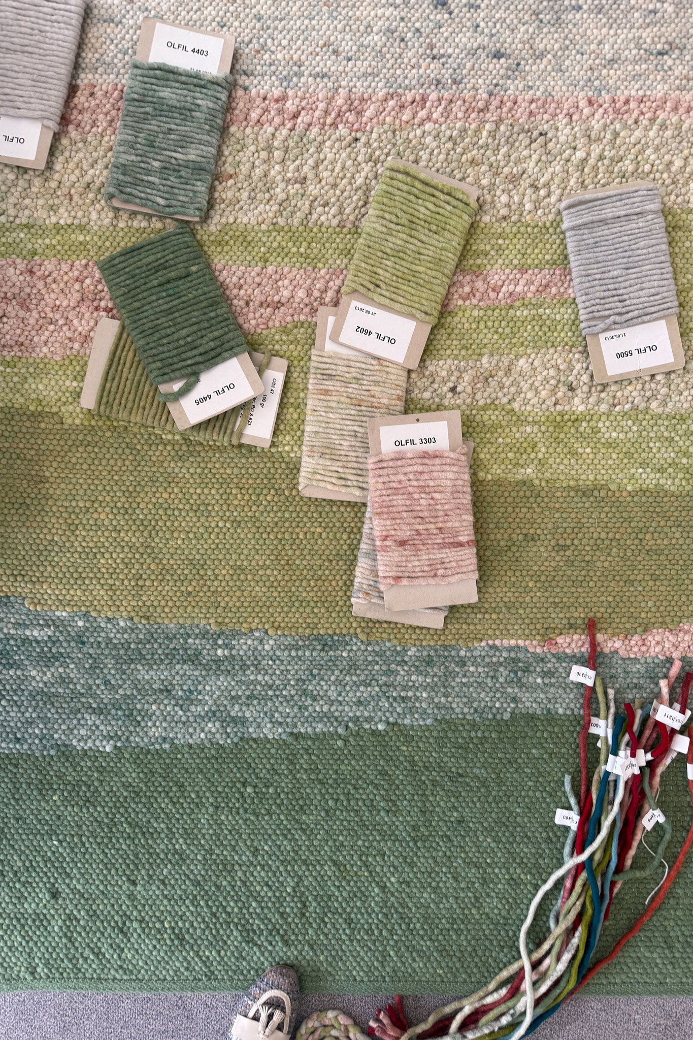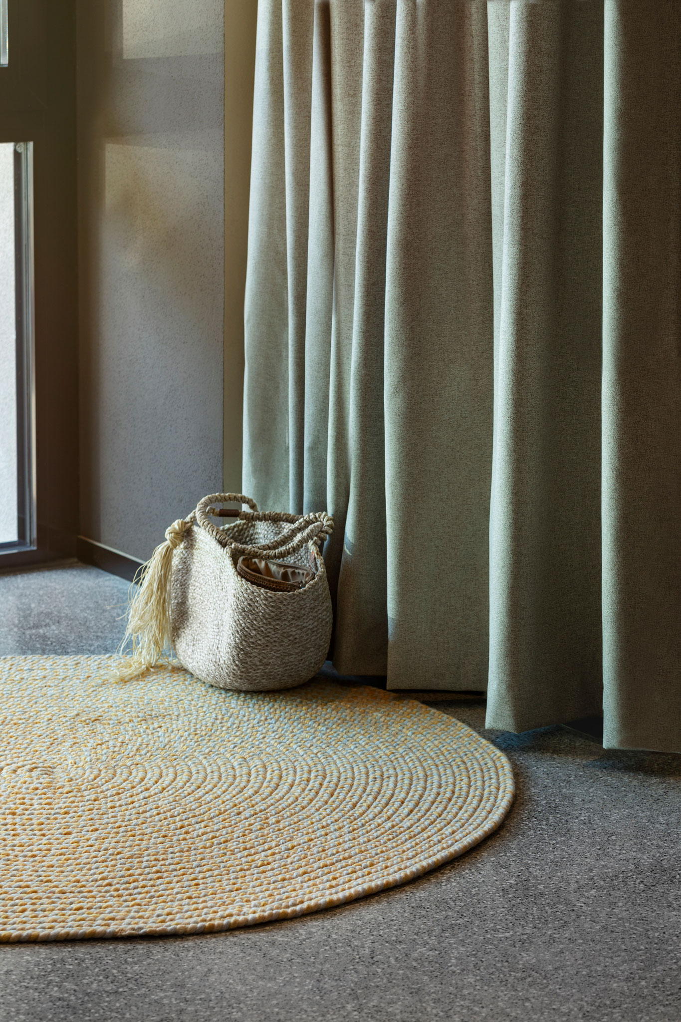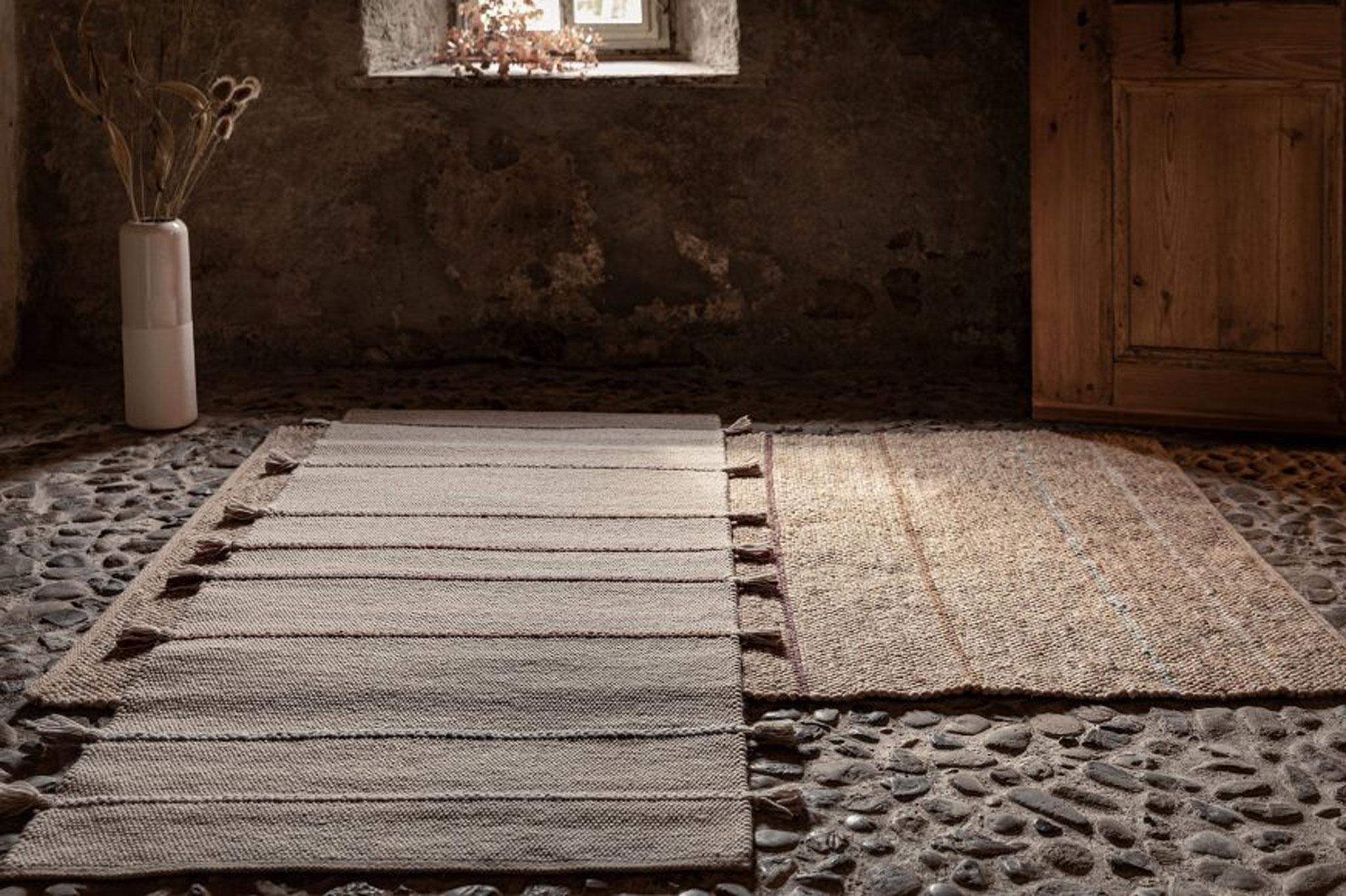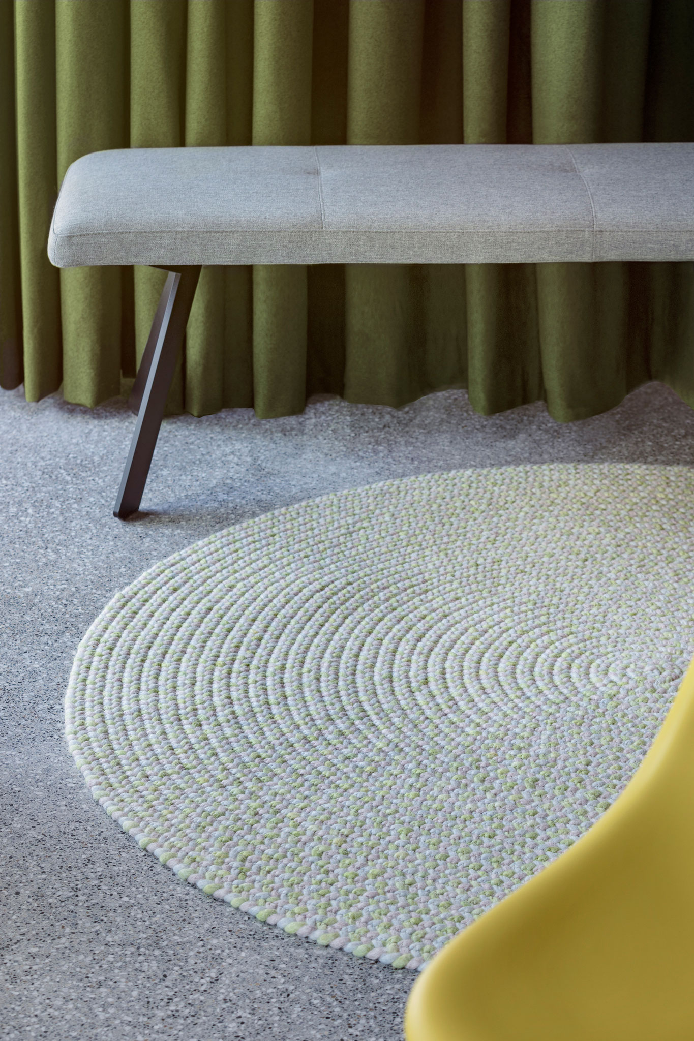 Jede Jahreszeit hat ihren eigenen Klang und einen Rythmus in dem sich die Natur verändert – der Teppich "Music" gibt in fein dosierten, handgeflochtenen Zöpfen in der Kombination mit der ruhigen Webstruktur genau diesen wieder. Die offenen Enden stehen für die Unanhängigkeit der Natur und verleihen dem Teppich eine lockere Anmutung.