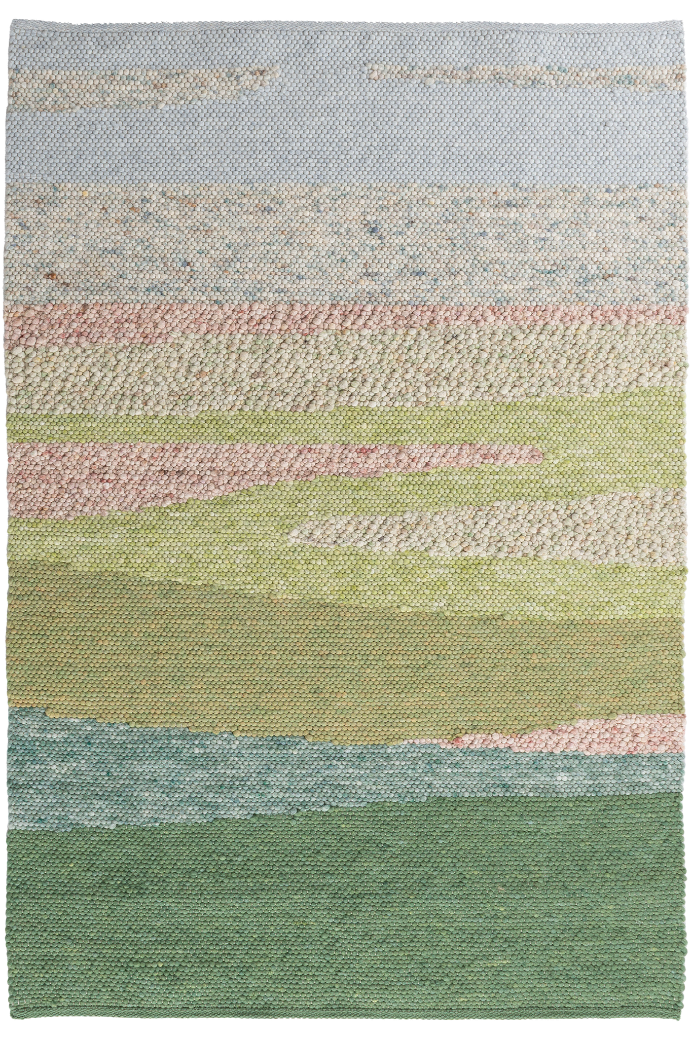 Facettenreiche Farbtöne, die Mischung aus zwei Strukturen, sowie die malerische Zusammenstellung der acht verschiedenen Farben machen den Teppich "Memory" zu einem Naturgemälde für alle Sinne.